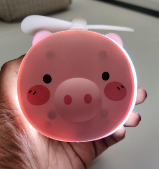 Cartoon Cute Pig LED Lights Travel Mirror Pocket Fan